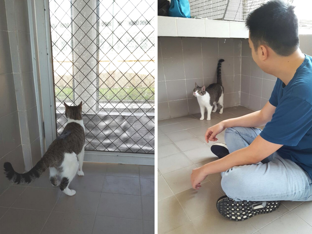 Sunny the cat hangs out in quarantine at KLAQS.