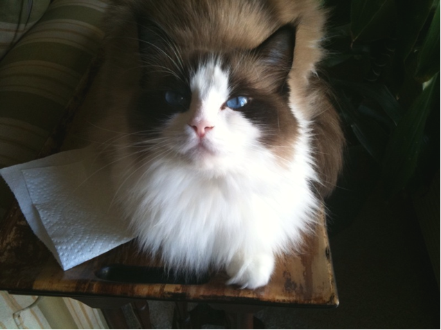 In 2008, Basia was adopted by mom and I just after my dad passed away and a few months before my mom passed away from fourth stage breast cancer. Basia, pronounced Basha, was named after the Polish pop singer who was always a family favorite. We shared her together during an obviously very tender time having adopting her from a San Diego county Ragdoll breeder at 2 1/2 yrs old, when she had been retired from breeding.